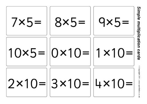 Simple Multiplication Flash Cards – 2, 5 and 10 Times Tables