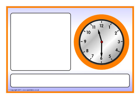 An editable set of posters (Microsoft Word required) with space to add pictures of daily activities alongside analogue clocks as well as your own text. A useful accompaniment to our Half past daily routine time posters.