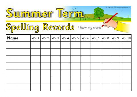 Printable wall charts to display in your classroom each term showing children’s spelling test results. Editable Microsoft Word templates enabling you to add your pupil names.