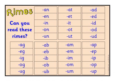 Rime Charts 1 – Dyslexic Friendly (SB5721) - SparkleBox