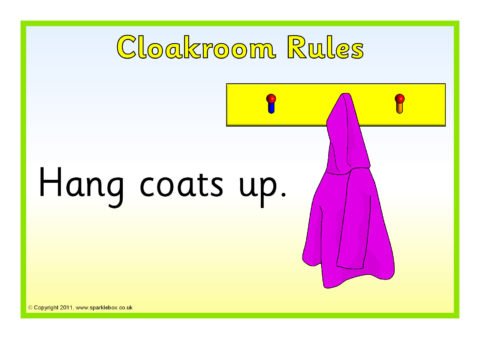 A set of posters with rules for your cloakroom area. Also includes an editable poster for you to type your own set of rules.