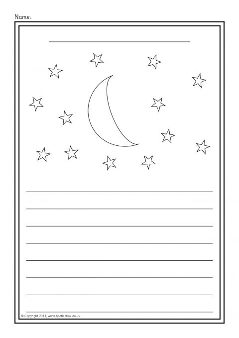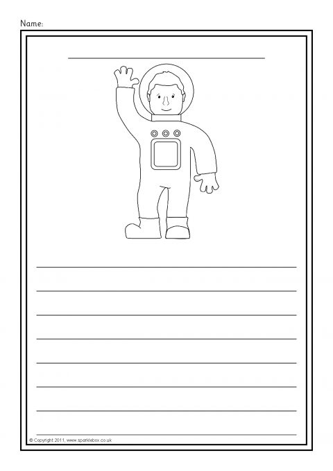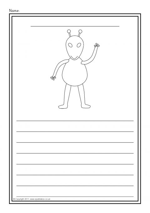 A set of simple printable sheets featuring space fantasy pictures for children to colour along with writing lines for topic-related writing.