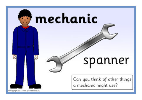 A set of posters featuring pictures of various types of workers and their tools. Great for prompting topic-related discussion.