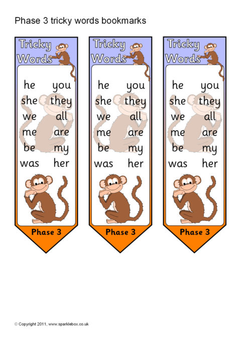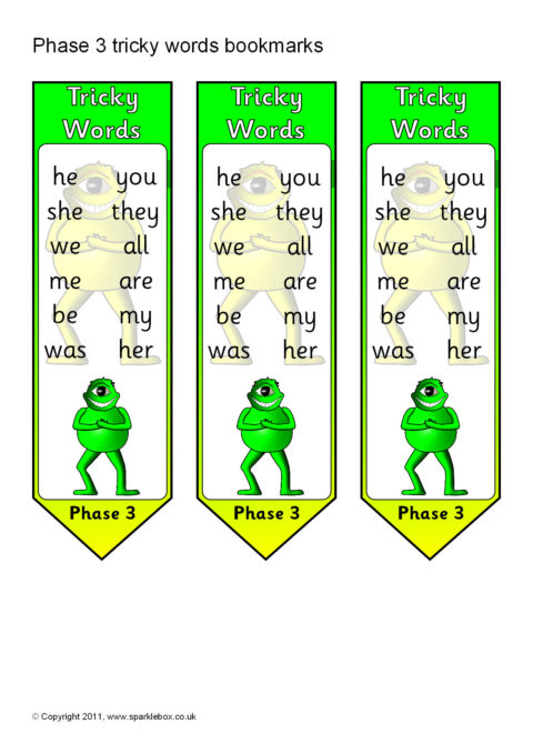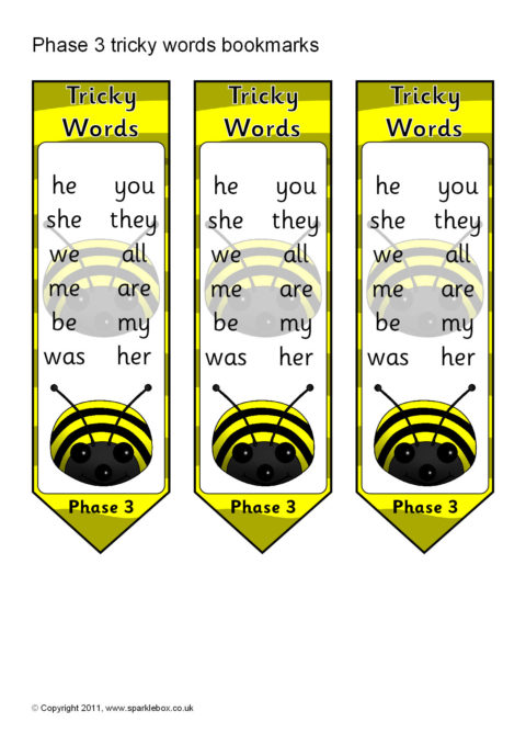 Phase 3 Tricky Words on Bookmarks (SB5808) - SparkleBox