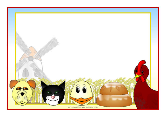 Portrait and landscape Little Red Hen story A4 page borders. Includes editable Microsoft Word templates as well as resizable JPG images
