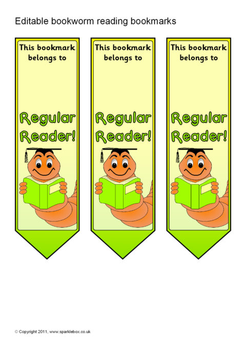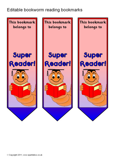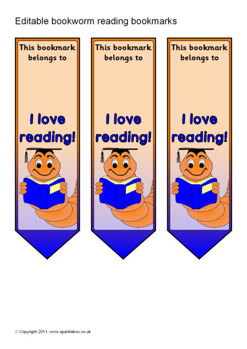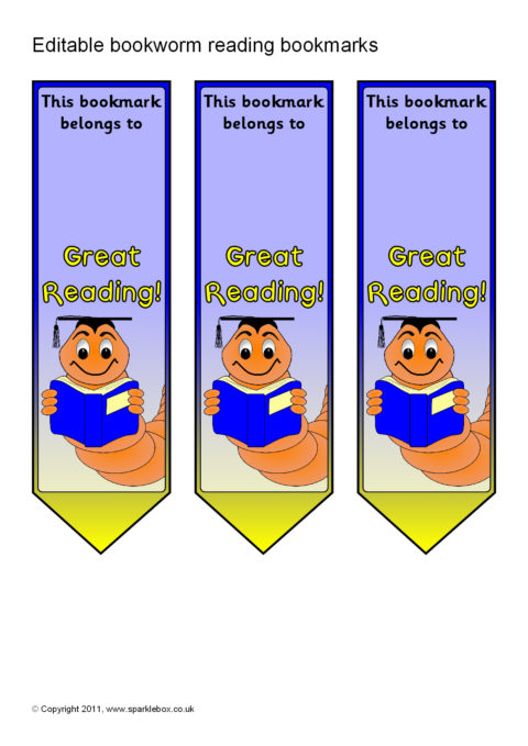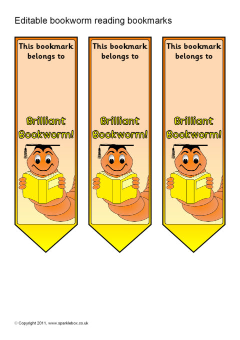 Editable Bookworm Reading Bookmarks (SB5814) - SparkleBox
