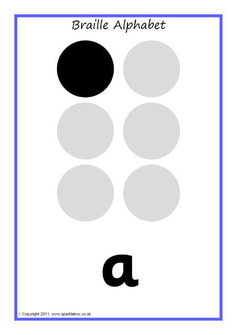 A set of simple A4 posters featuring the alphabet letters in braille.