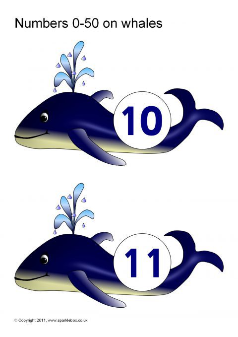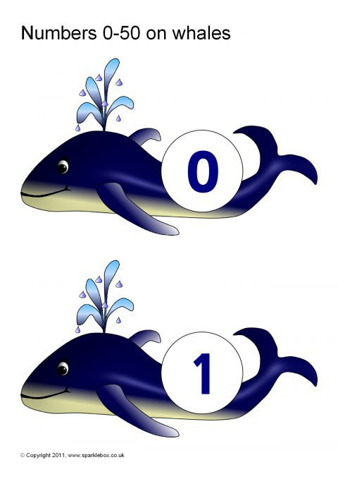 Numbers 0-50 on Whales (SB5919) - SparkleBox