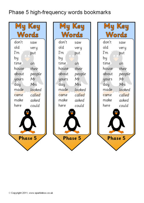 Phase 5 High-Frequency Words on Bookmarks