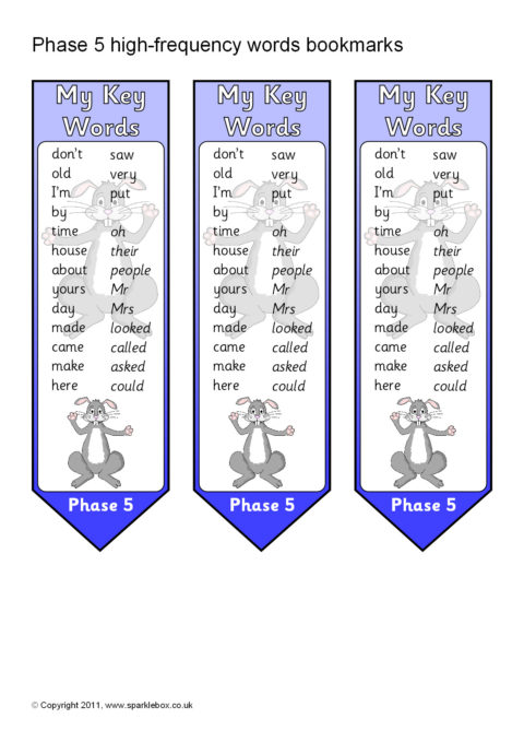 Phase 5 High-Frequency Words on Bookmarks (SB5922) - SparkleBox