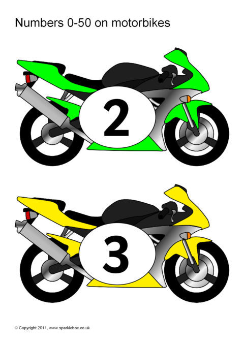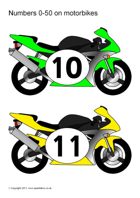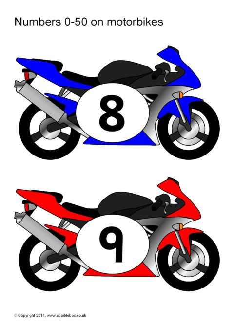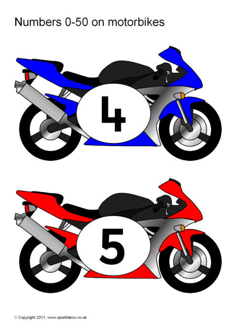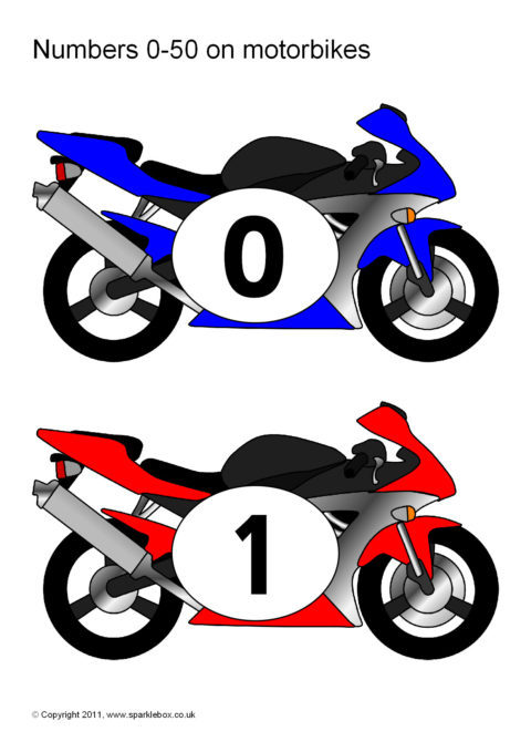 Numbers 0-50 on Motorbikes (SB5933) - SparkleBox