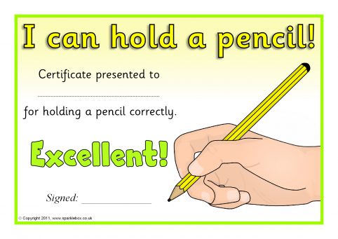 Certificates to present to pupils as awards for learning to hold their pencil correctly.
