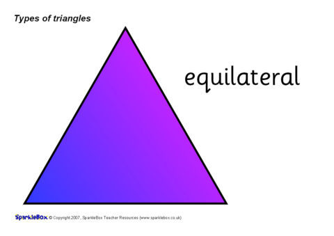 A simple set of printable sheets showing the different types of triangles: equilateral, right-angled, isosceles and scalene.