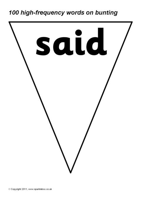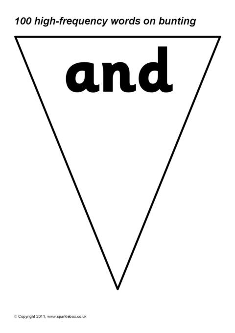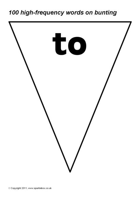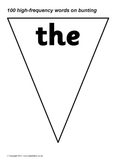 100 high-frequency words presented on bunting triangles. Print on coloured paper or have your class paint or decorate the triangles themselves.