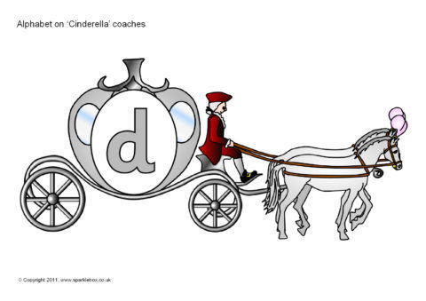 The lowercase alphabet letters presented on ‘Cinderella’-style coaches.
