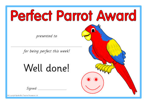 Parrot-themed reward certificates to accompany the parrot target sheets.