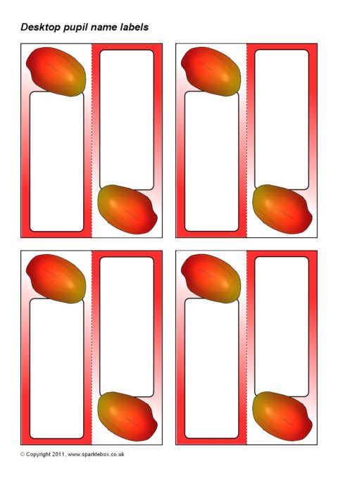 A set of editable pupil name labels that can be folded to stand on the tabletop showing the child’s forename on one side and their surname on the other. Microsoft Word required.