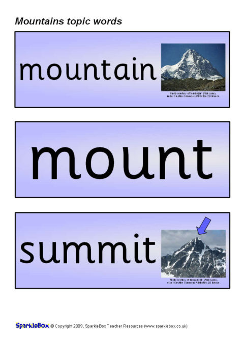 Mountains Topic Word Cards (SB6238) - SparkleBox