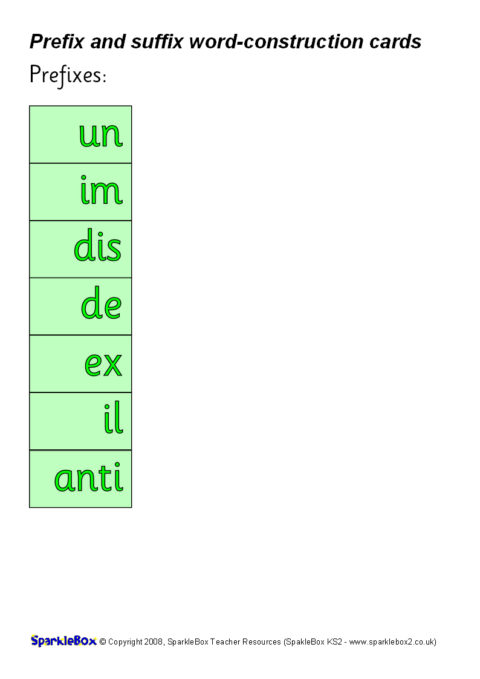 Prefix and Suffix Word-Constructor Cards (SB6261) - SparkleBox