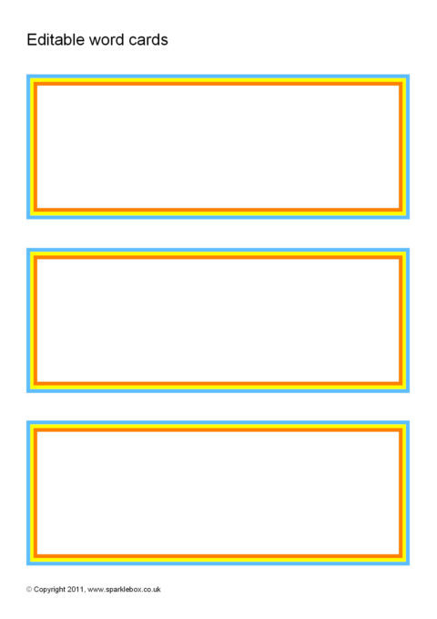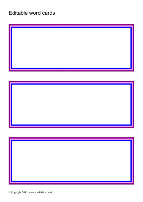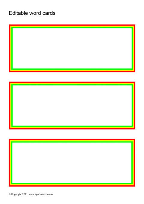 Microsoft Word templates that enable you to add text to simple word flash cards with coloured borders (3 per page).