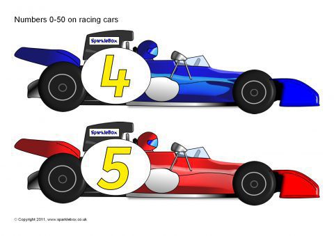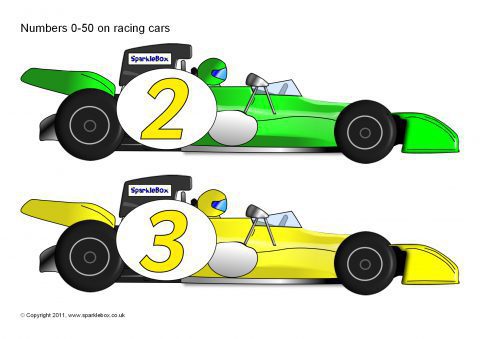 Numbers 0-50 on Racing Cars (SB6319) - SparkleBox