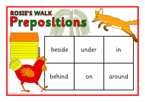 A printable bingo game linked to the story of Rosie’s Walk by Pat Hutchins.  Children match the picture cards to the prepositions on their word board.