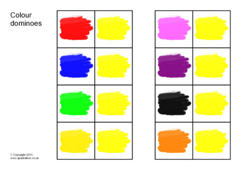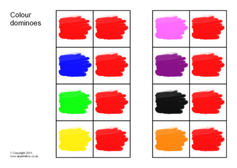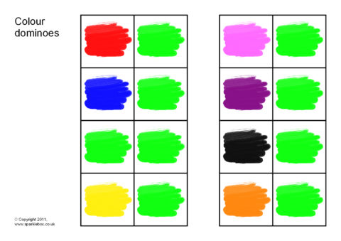 A set of printable dominoes aimed at helping children recognise the common colours.