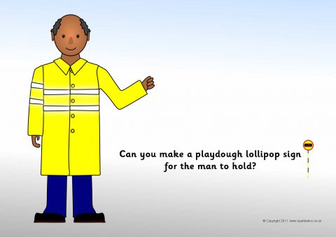 A set of playdough mats linked to road safety. Pupils make the red/green men for the pelican crossing, stripes on a zebra crossing, a sign for the lollipop person and more.