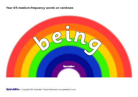 A set of printable rainbows with which include over 120 medium-frequency words as specified in the National Literacy Strategy.