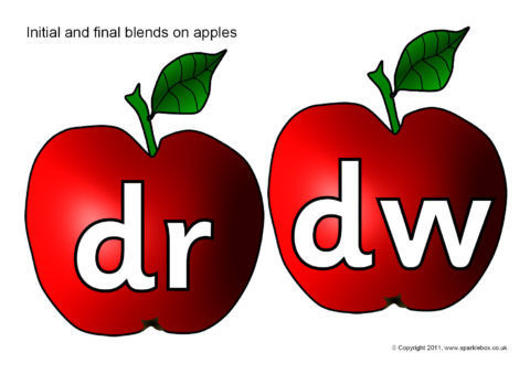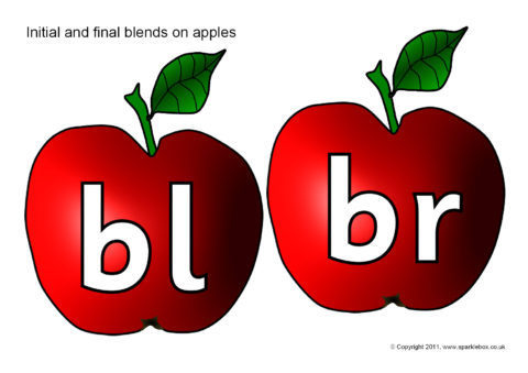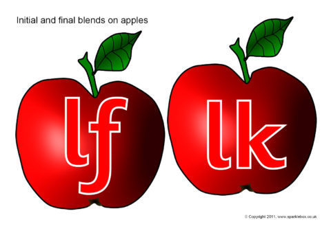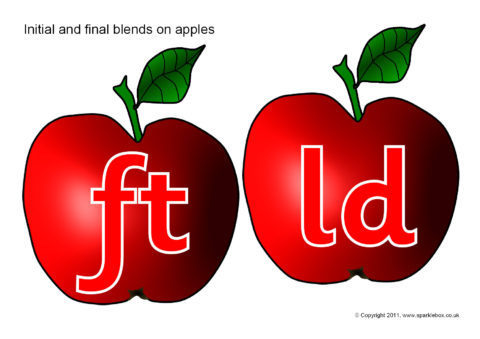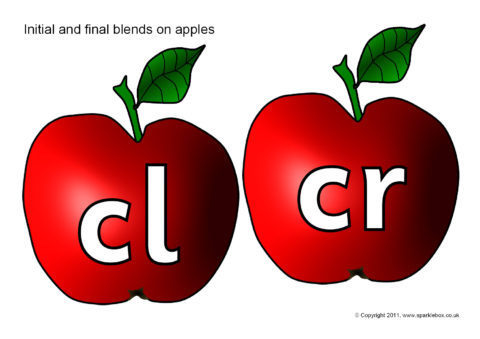 Initial and final consonant blends/clusters presented on red apples.