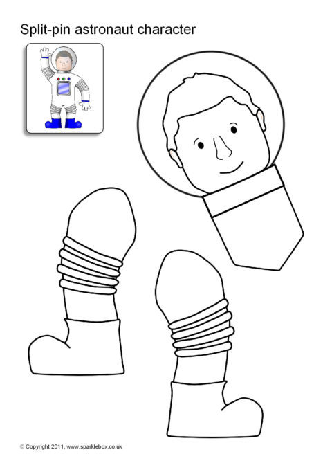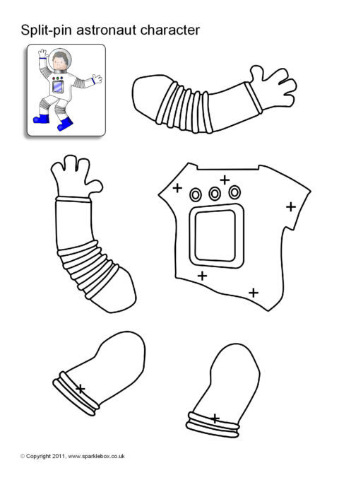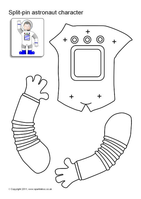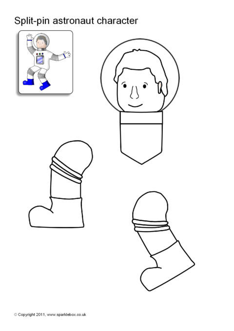 A set of body parts that can be assembled into a split-pin astronaut.  Children cut out the body parts and use split-pins to join together at the appropriate places.