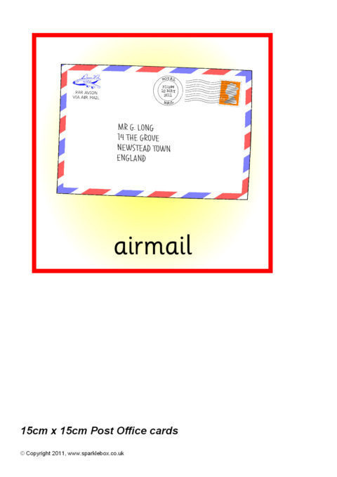 Multi-use printable cards with items featuring Post Office items.  Each card is 15cm by 15cm and can be used for all sorts of card-based activities.