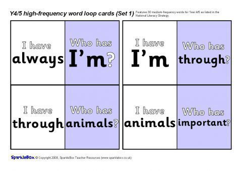 A set of printable loop cards featuring 30 of the Year 4/5 medium-frequency words specified in the National Literacy Strategy.