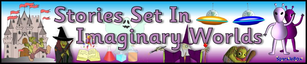 A colourful banner for your ‘Stories Set In Imaginary Worlds’ Literacy display.