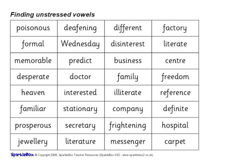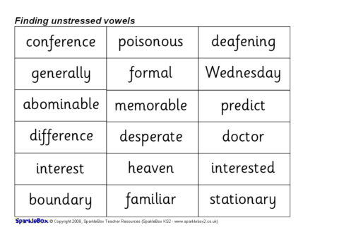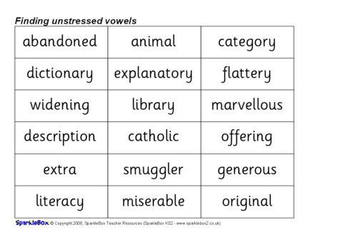 Finding Unstressed Vowels Activity Set (SB6522) - SparkleBox