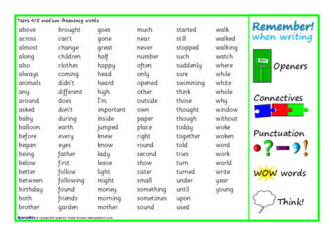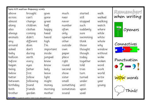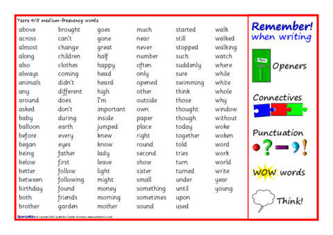 Printable word mats with writing reminders and the medium-frequency words for Year /4/5 as specified in the National Literacy Strategy.