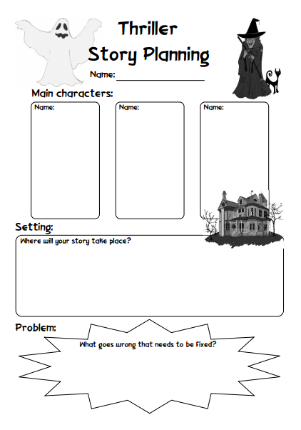 A set of simple printable sheets for planning a story themed with different fictional genres.
