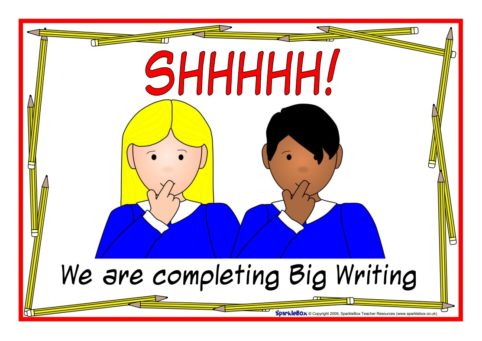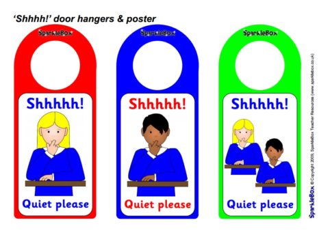 ‘Shhhh!’ Big Writing Door Hangers and Poster