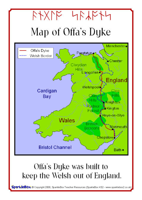 Two simple maps showing Anglo-Saxon kingdoms and Offa’s Dyke on the English-Welsh border.