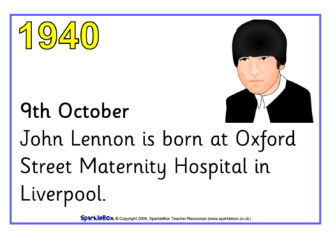 A set of printable posters showing the key events in the life of the Beatle, John Lennon.
