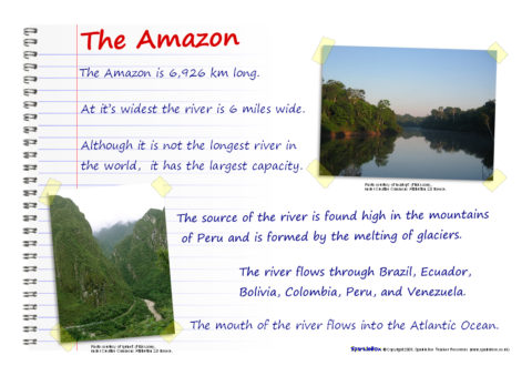 A brilliant set of ‘scrapbook’ visual aids packed with facts and information about 8 different rivers around the world: Amazon, Nile. Ganges, Thames, Mississippi, Volga, Murray and Chang Jiang. It includes photos, maps and illustrations and is ideal for discussion, research or to use on classroom displays.