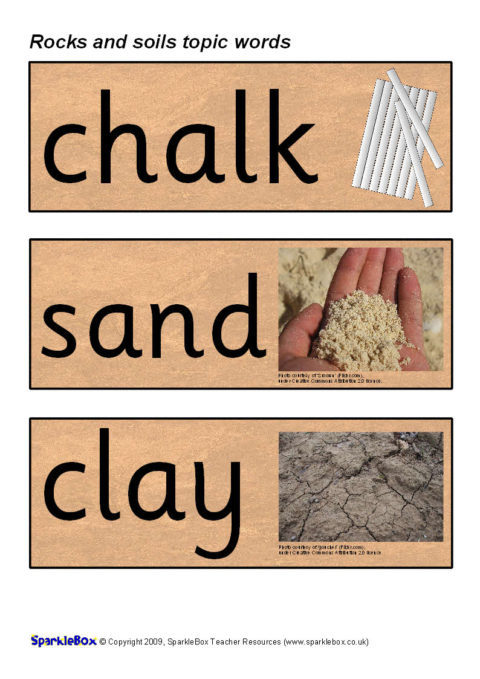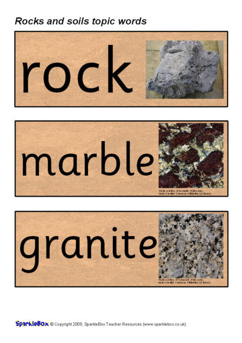 A group of printable word cards (some with pictures) linked to a topic on ‘Rocks and soils’.