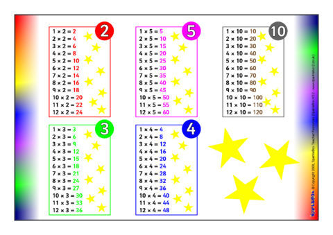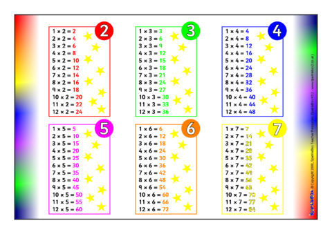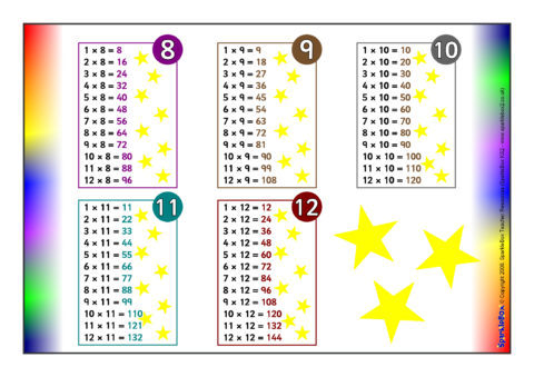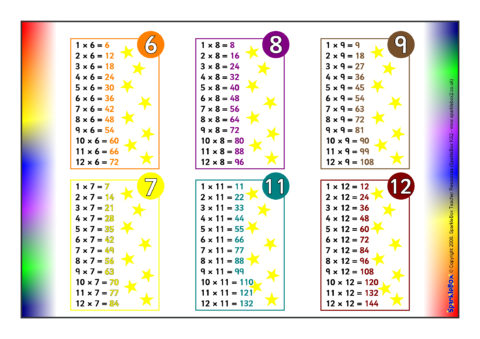 Two printable mats (which could be printed double-sided) showing the times tables.