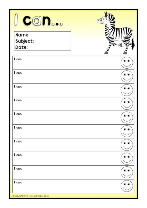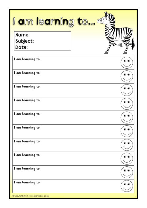 Editable target sheets (for Microsoft Word) with the text ‘I am learning to...’, ‘My next goal is...’ and ‘I can...’.  Each sheet has space for 10 targets.
