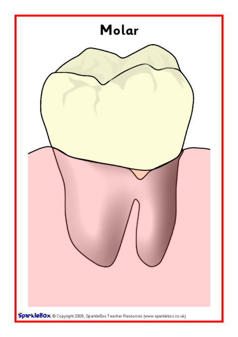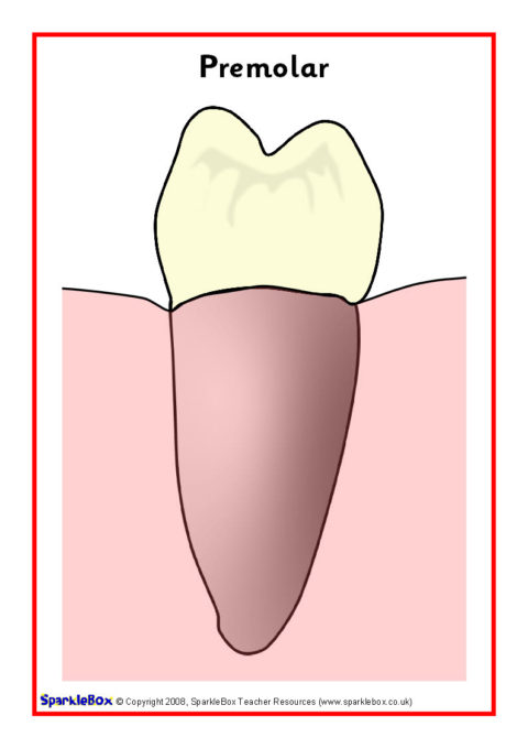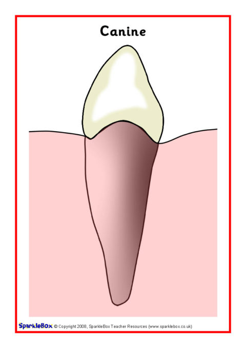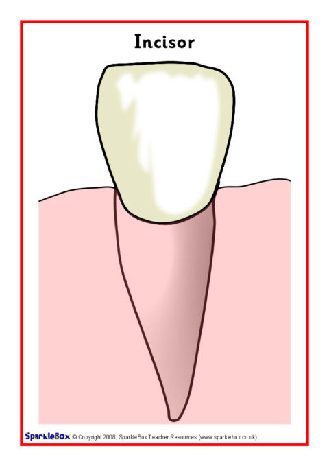 6 simple posters showing different types of teeth and diagrams of a tooth and the mouth.