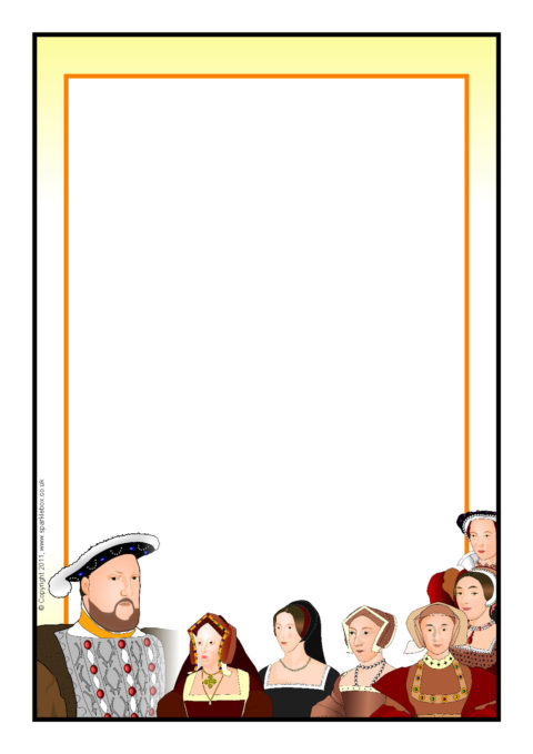 Portrait and landscape Henry VIII and his wives A4 page borders.  Includes editable Microsoft Word templates as well as resizable JPG images.