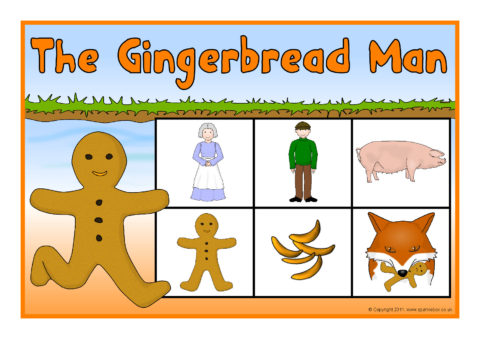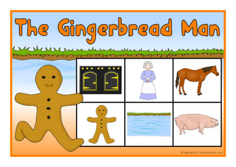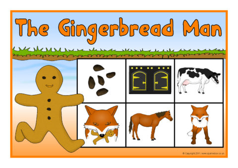 A set of printable bingo boards featuring items and characters from the traditional story of The Gingerbread Man.
