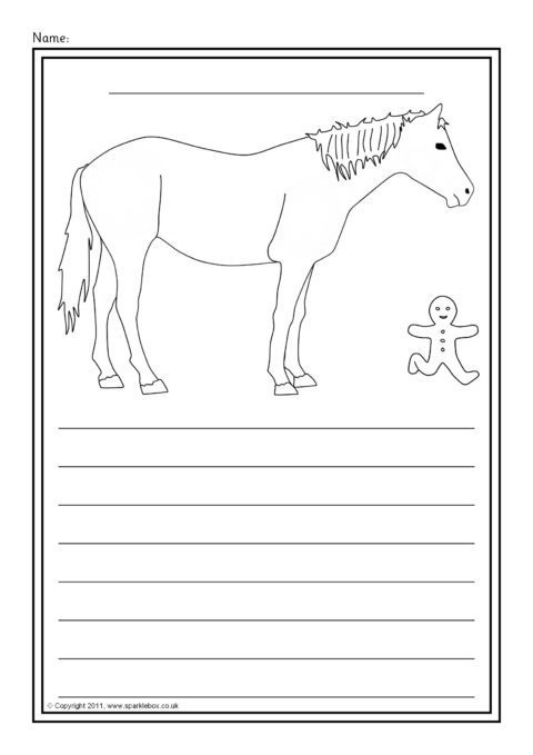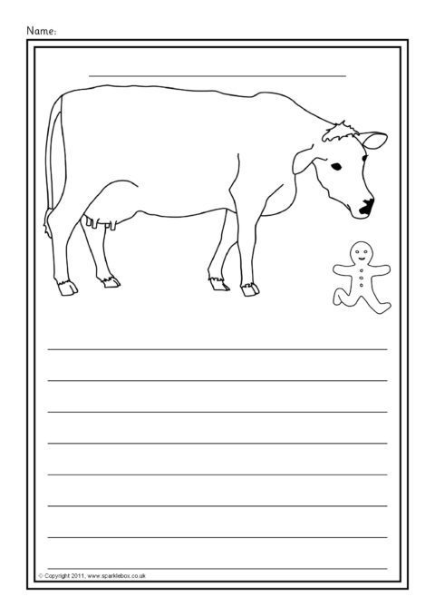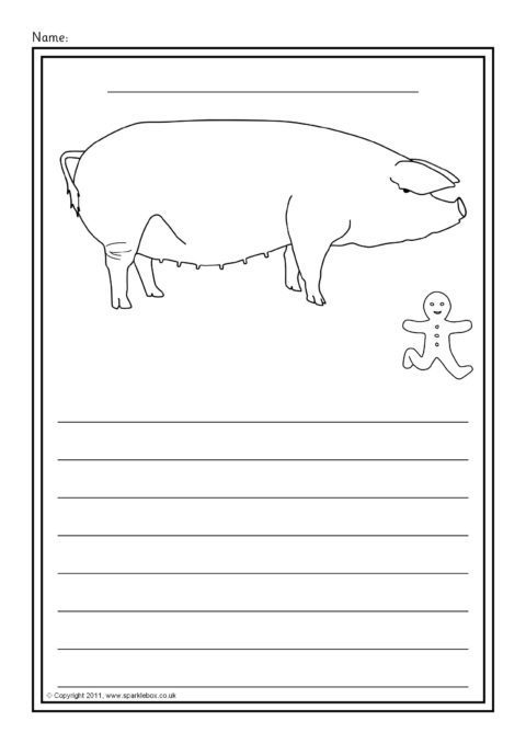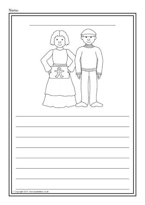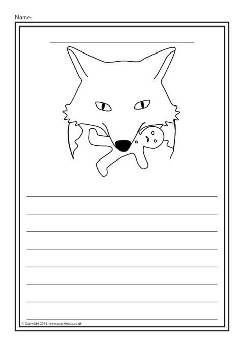 A set of simple printable sheets featuring images from the story of The Gingerbread Man for children to colour along with writing lines for story-related writing.