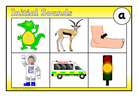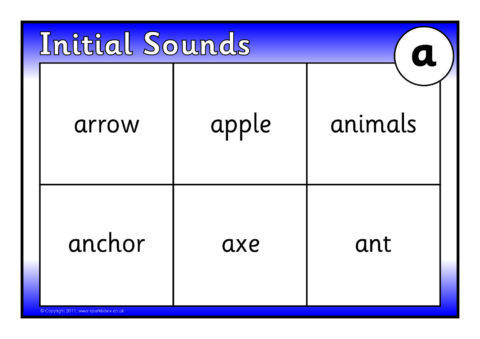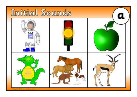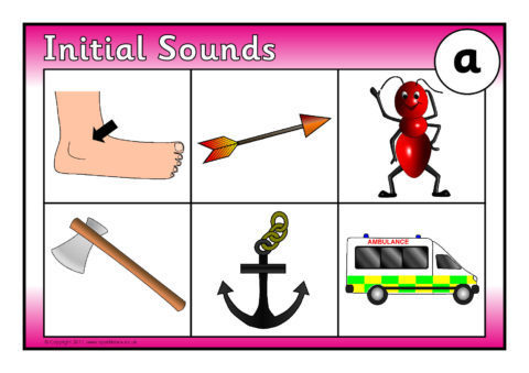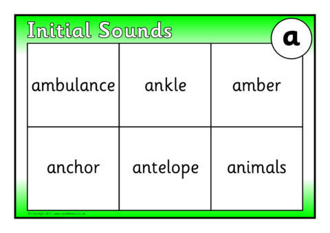 Printable bingo boards and picture cards where children match the pictures to the words featuring the initial sound ‘a’.