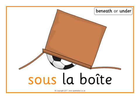 A set of 10 printable posters with common prepositions in French with accompanying pictures.  A great visual way of introducing pupils to French terms for describing position.